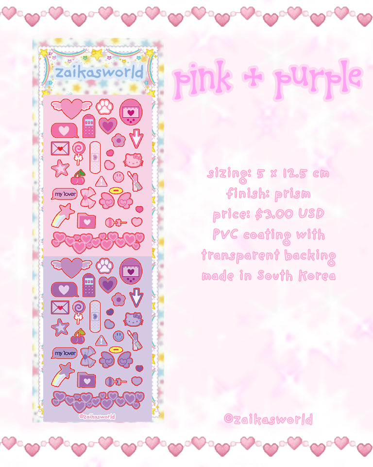 - Colours: pink + purple + blue